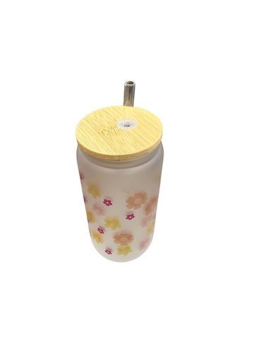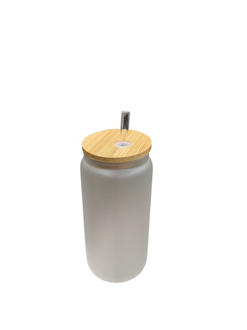 These 16 oz glass can cups come with bamboo lids and glass straws, perfect for iced coffee, tea, smoothies, and more. They are fully customizable with permanent vinyl or sublimation, and our design team can create a custom design just for you.